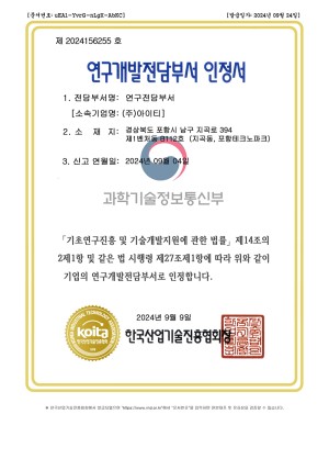 인증받은 기술력으로 더욱 앞서겠습니다.